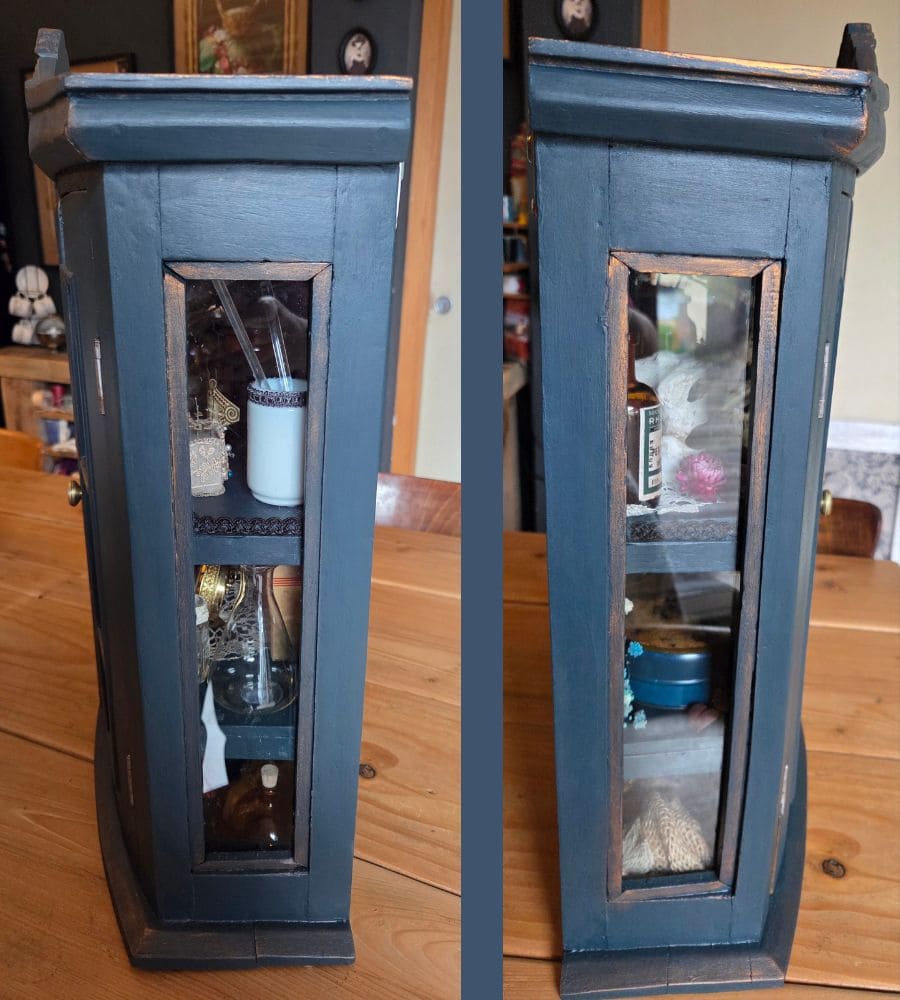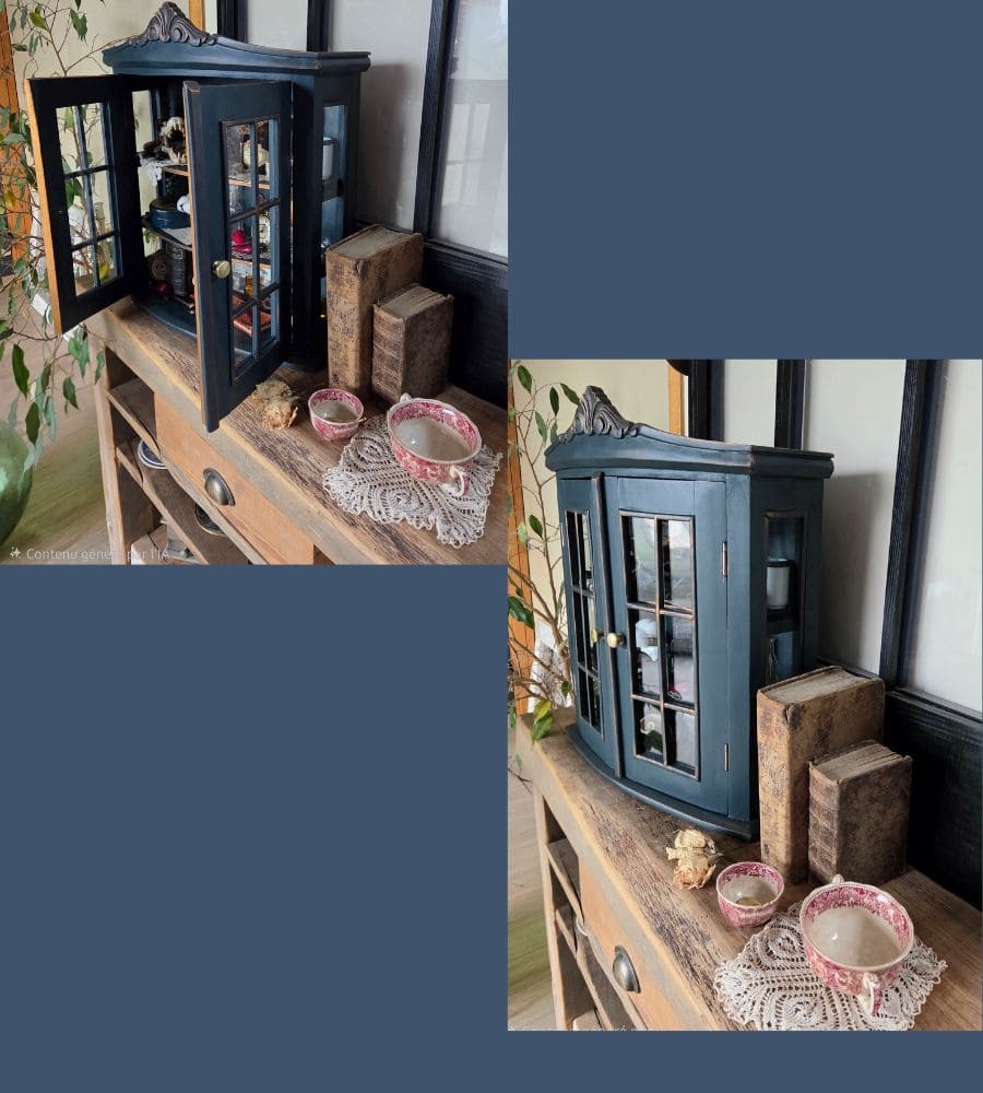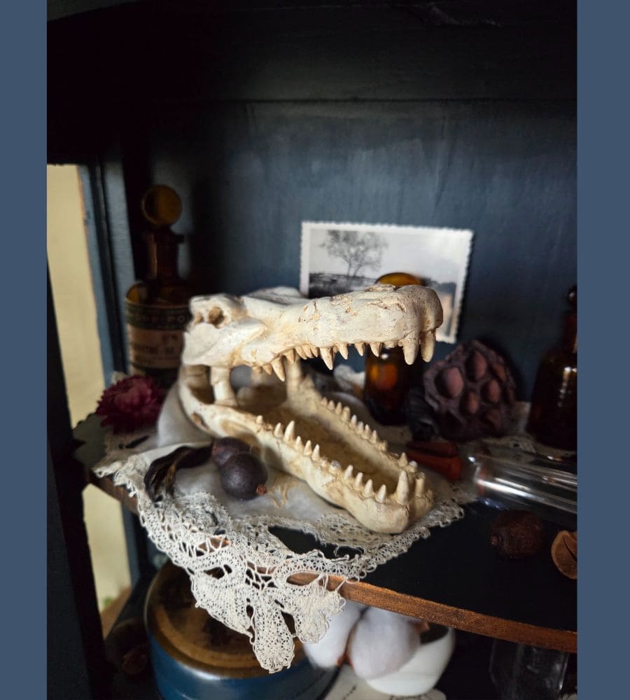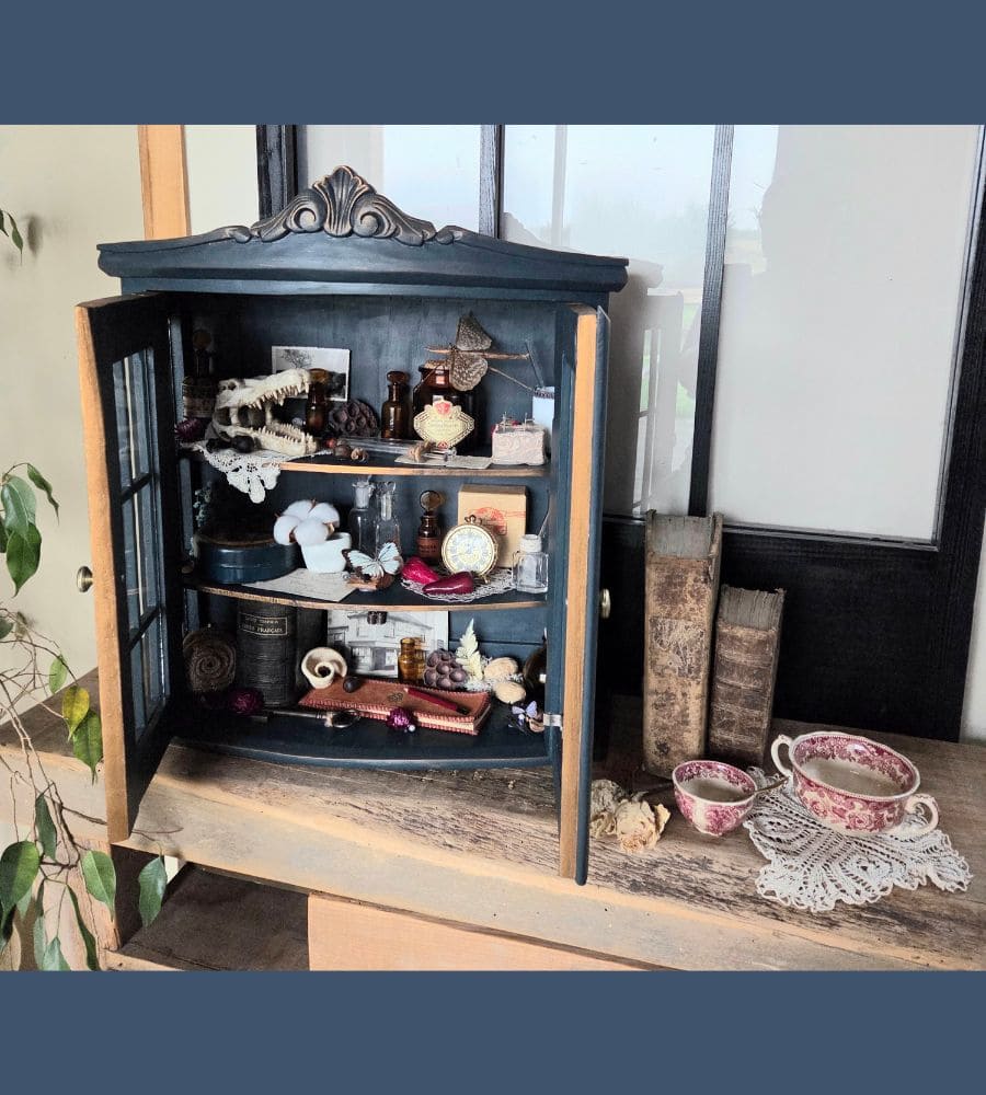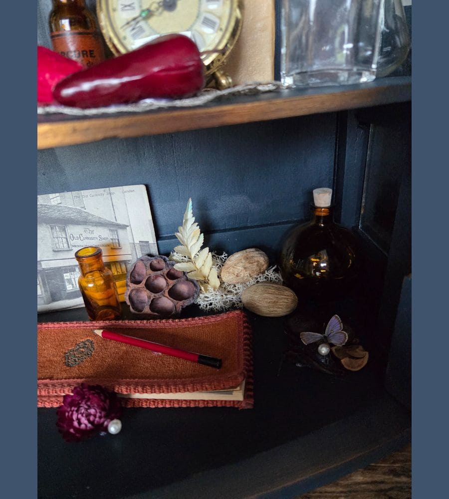 Chaque objet de cette ancienne vitrine revalorisée a été chiné et soigneusement préparé pour vous présenter ce théâtre silencieux où le passé dialogue avec l’imaginaire.