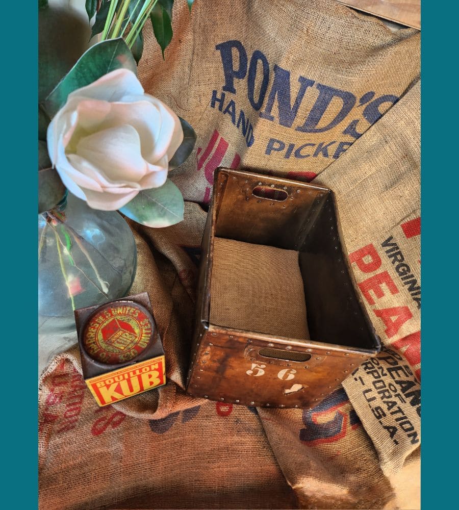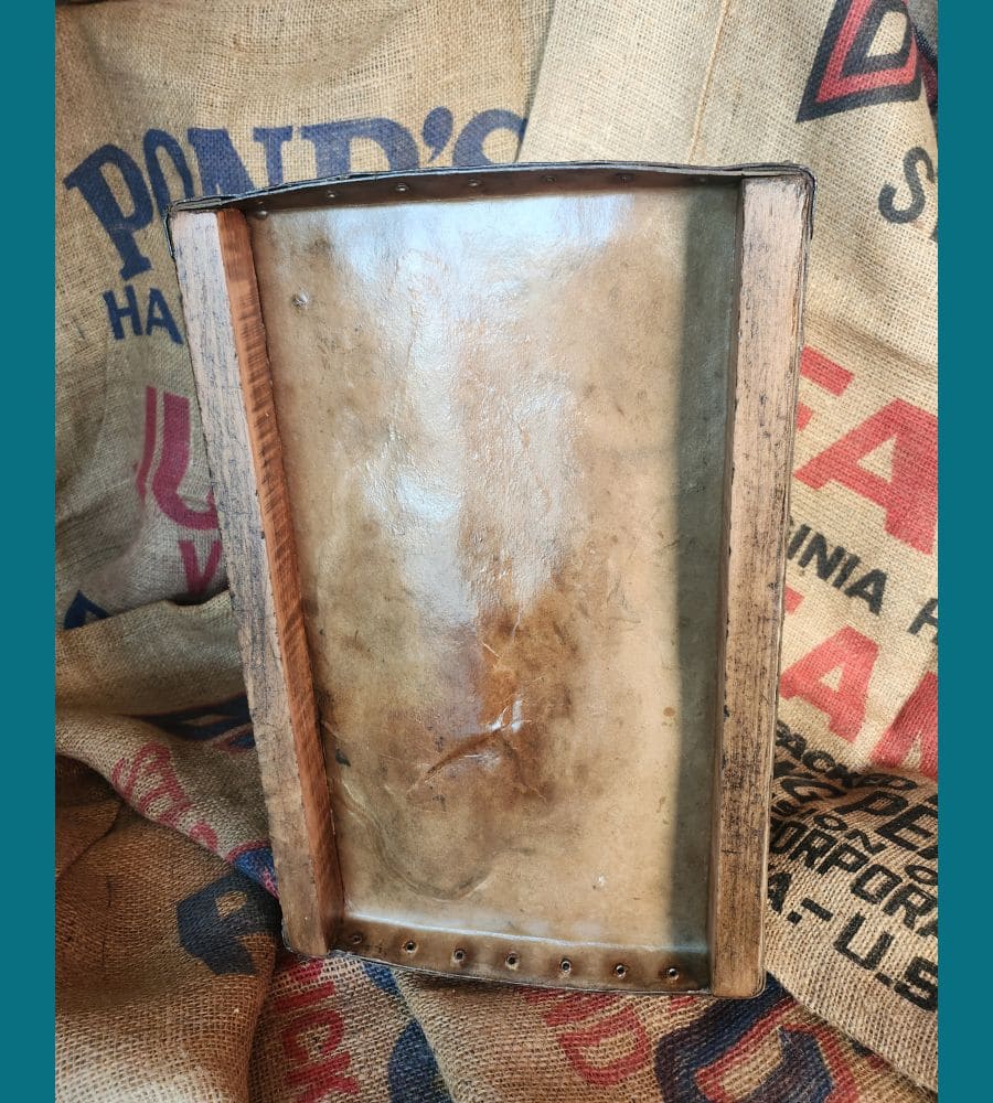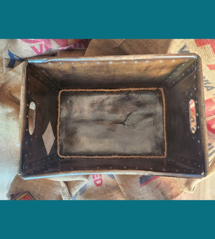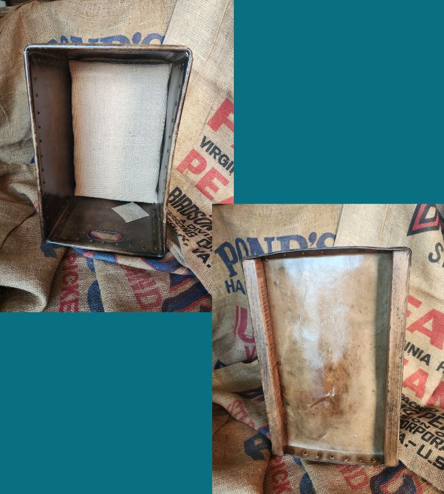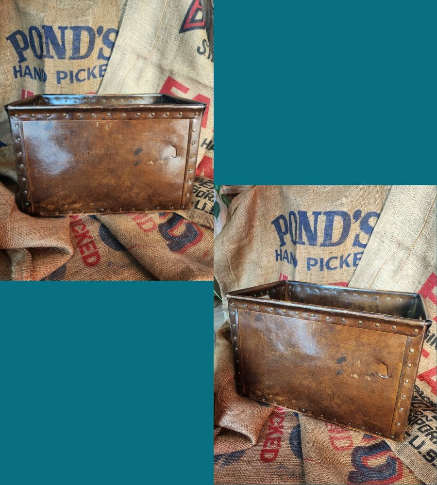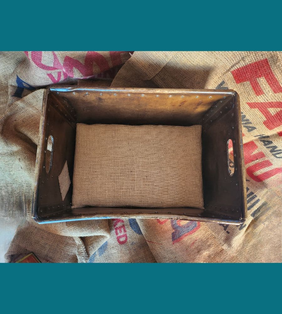 Elle provient d’un ancien atelier de tissage. Cette caisse a traversé quelques années, non sans encombre, mais ses marques du temps, bien visibles sur les photos, lui donnent toute son authenticité. Malgré les années passées, elle reste très solide avec ses renforts en bois (d’origine!) sur le dessous. Elle rappelle les caisses Suroy par son style et conception.