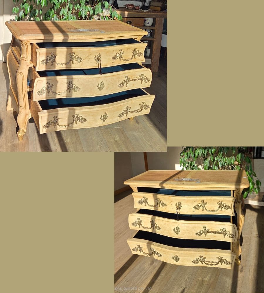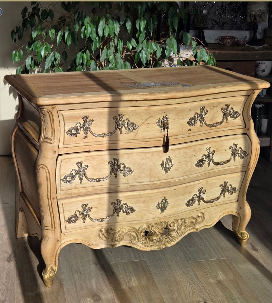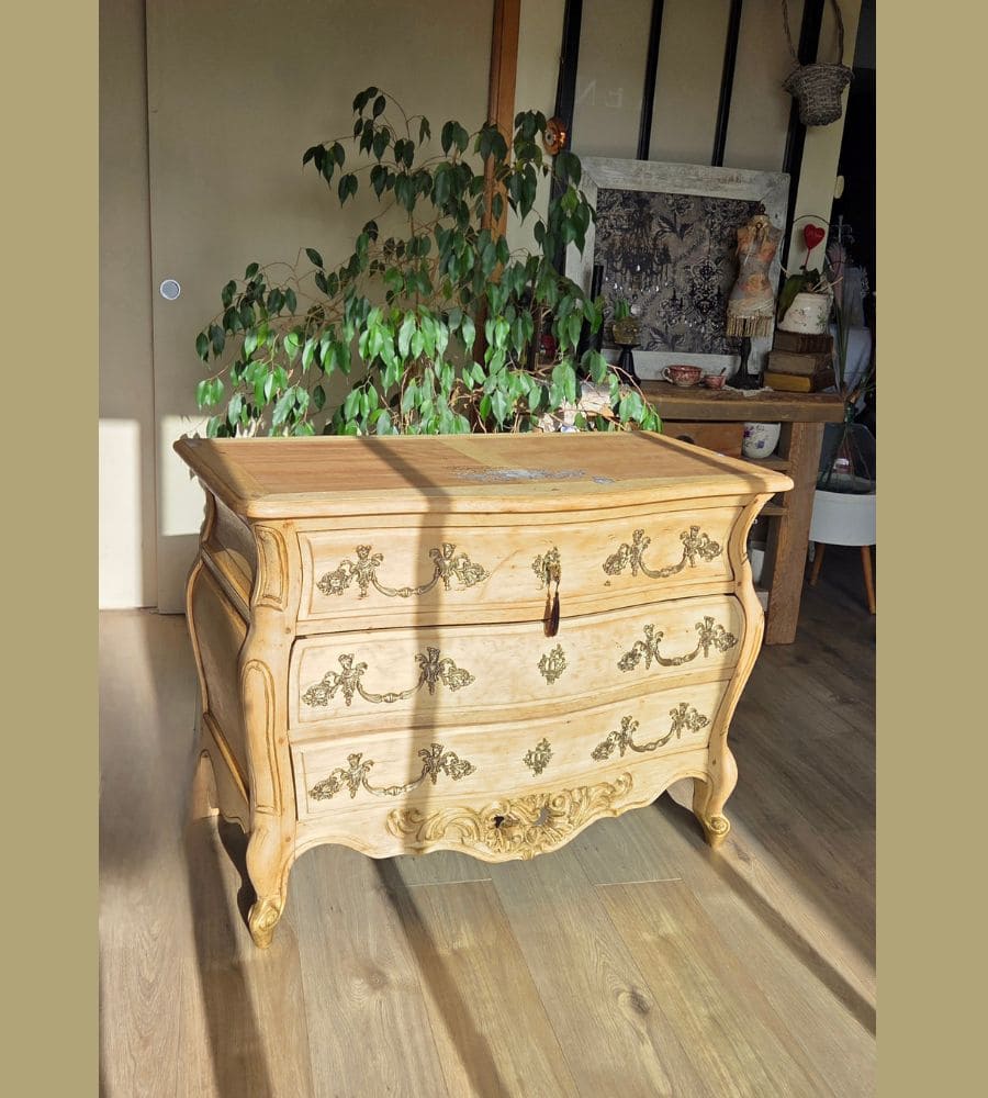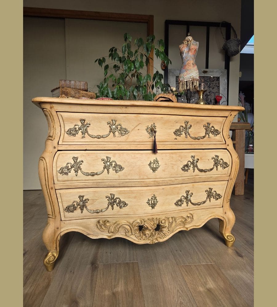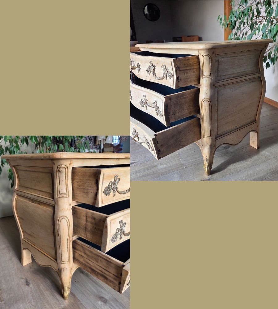 Cette ancienne commode bordelaise de style Louis XV, en bois massif (merisier) a été entièrement revalorisée.