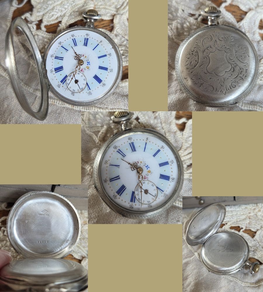 Montre à gousset ancienne en argent fin, avec estampilles et signature à identifier (voir photos)