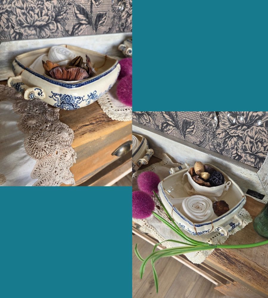 Ainsi, autrefois destinée au service de table, cette soupière devient aujourd’hui une pièce décorative unique, pleine d’histoire.
