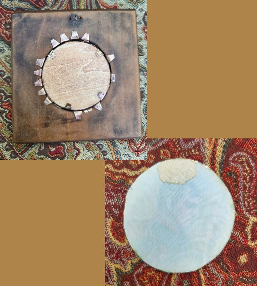 Cadre poncé et ciré. Cerclage en cuivre nettoyé et protégé.