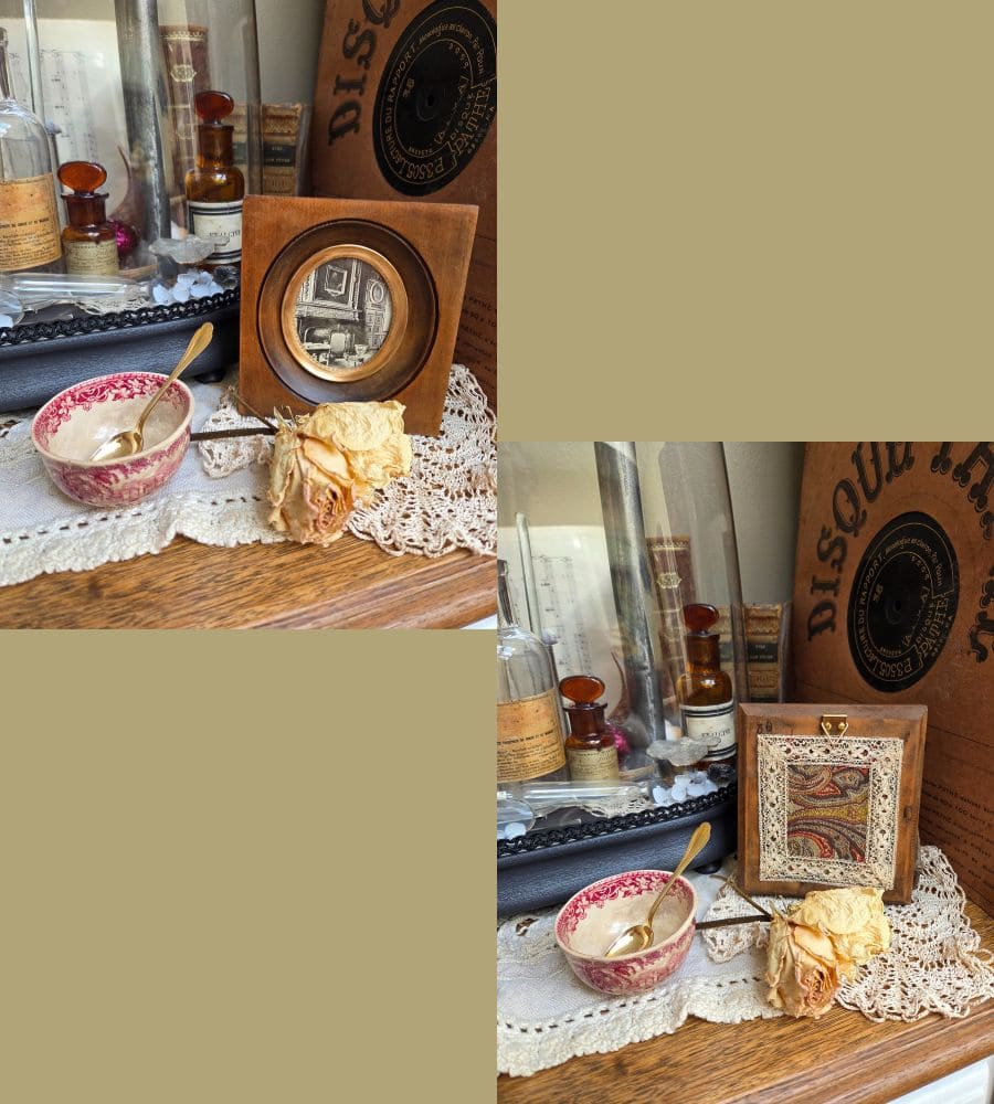 Un cadre pour miniature et sa photo en noir et blanc