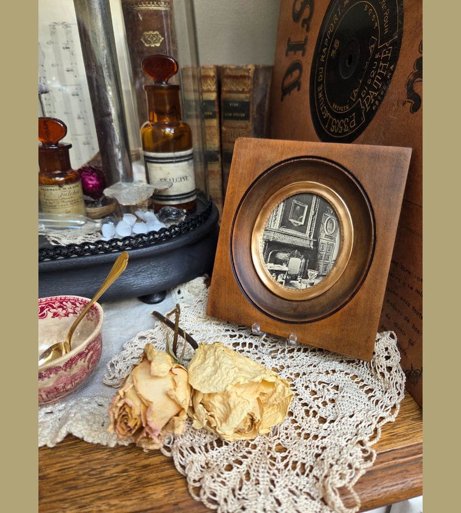 Ce magnifique cadre numéroté pour miniature avec son ancienne carte postale noir et blanc est parfait pour compléter une collection ou votre décoration esprit brocante chic.