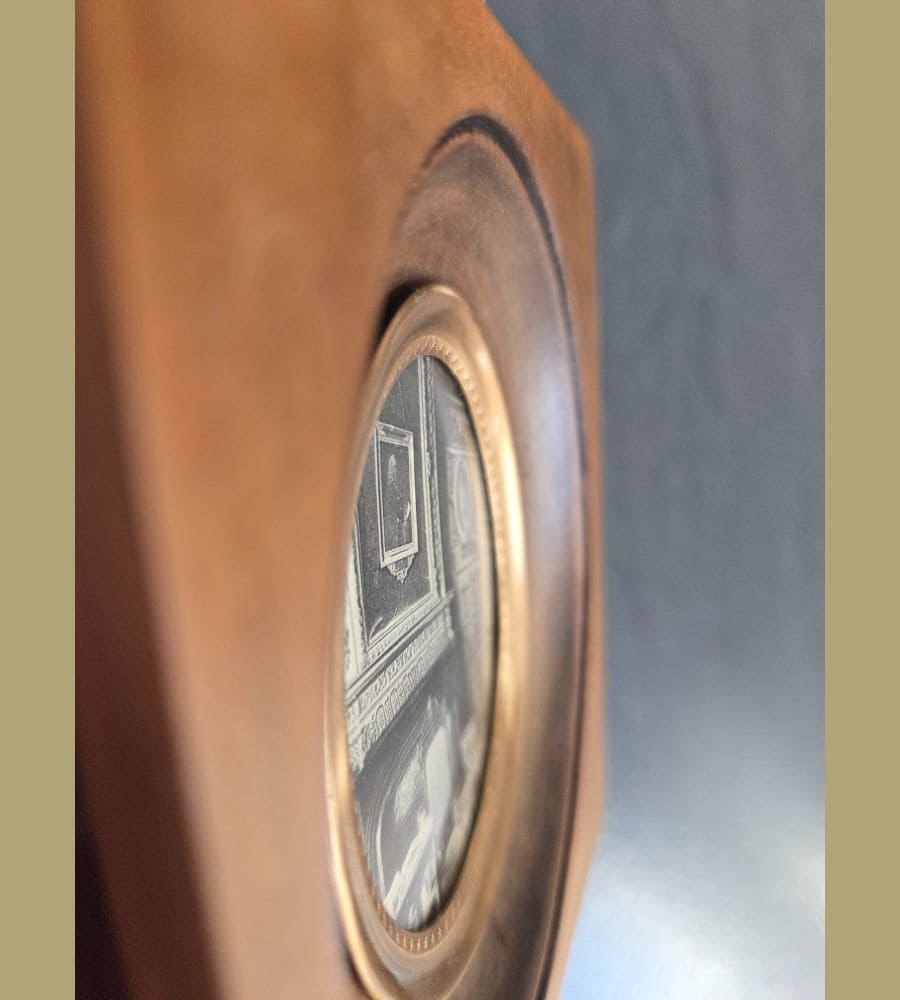 Le verre est légèrement bombé et le cerclage du verre en cuivre.