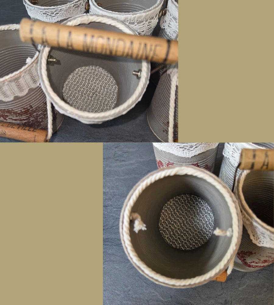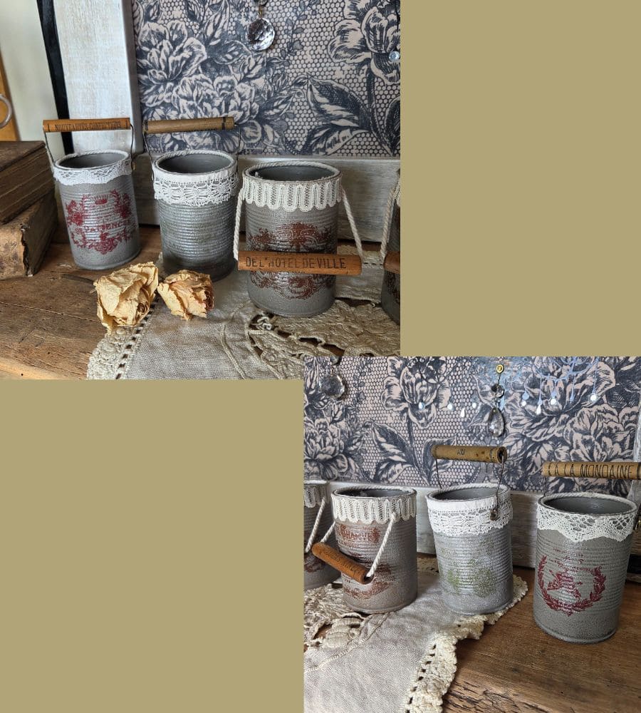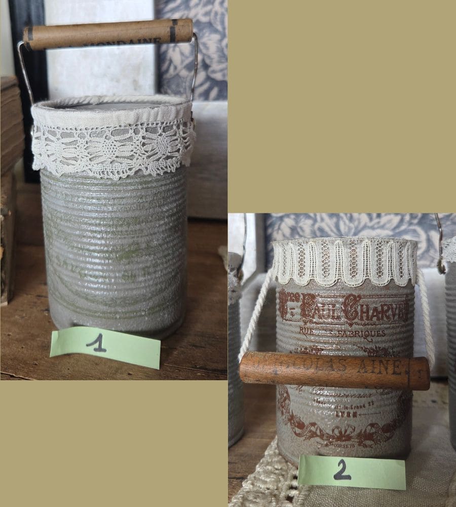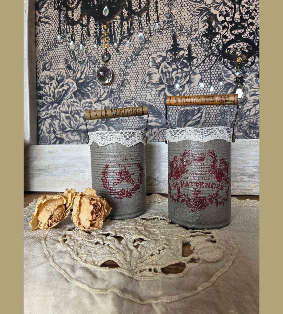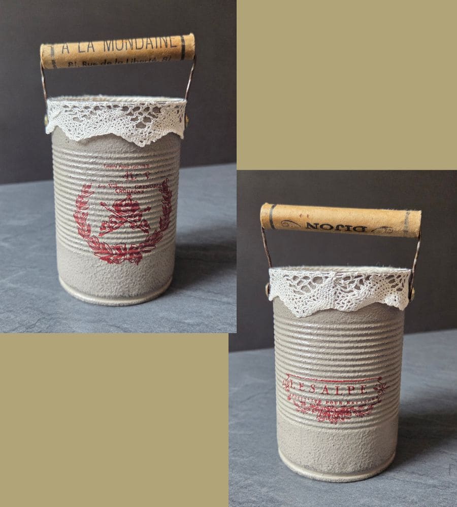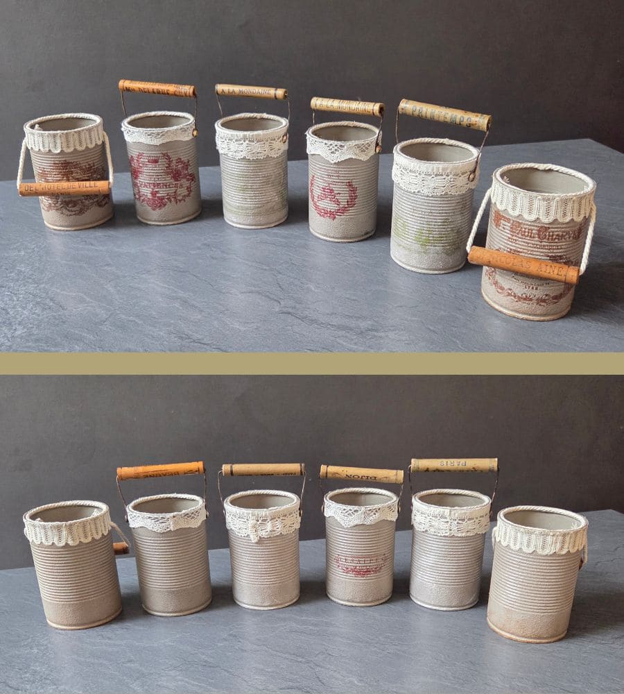 Découvrez ces jolis pots confectionnés à partir d’anciennes boîtes de conserve revalorisées, dans un style campagne, shabby chic et bohème.