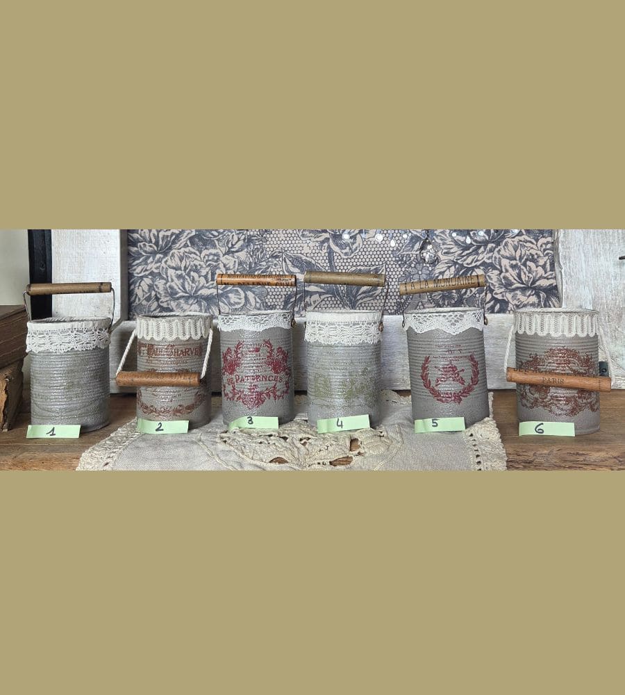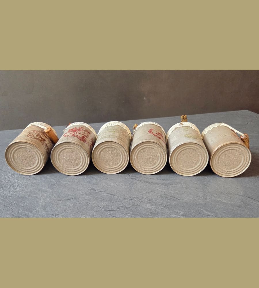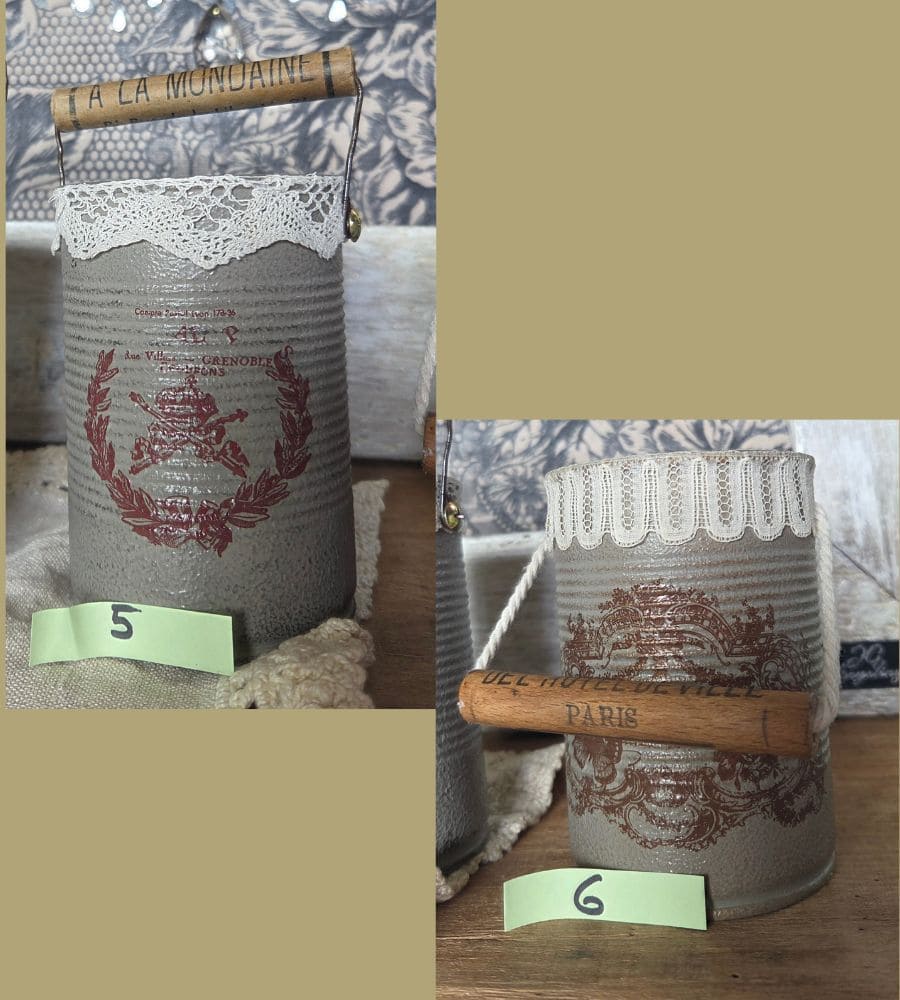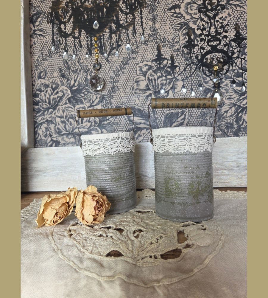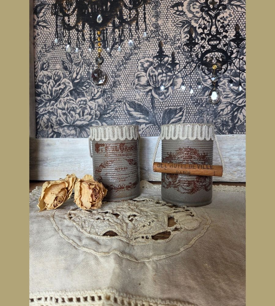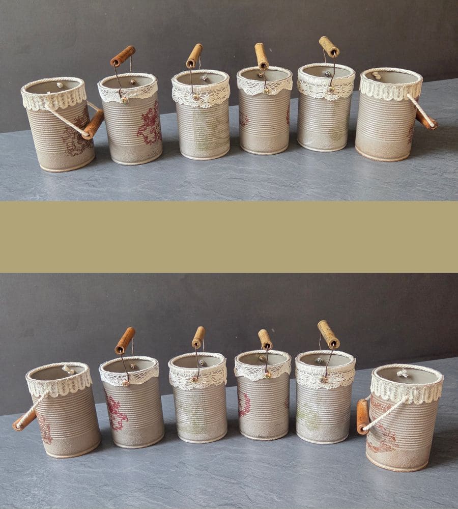 Découvrez ces jolis pots confectionnés à partir d’anciennes boîtes de conserve revalorisées, dans un style campagne, shabby chic et bohème.