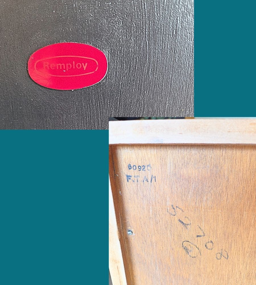 Ce magnifique secrétaire anglais Remploy, venu des années 60, a été entièrement poncé et rénové avec soin. Il porte fièrement son étiquette « Remploy » d’origine sur l’intérieur d’une porte ainsi que son numéro de série au dos.