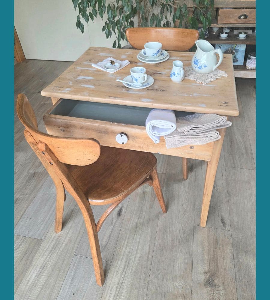 Laissez-vous séduire par cette ancienne petite table de campagne revalorisée avec soin.