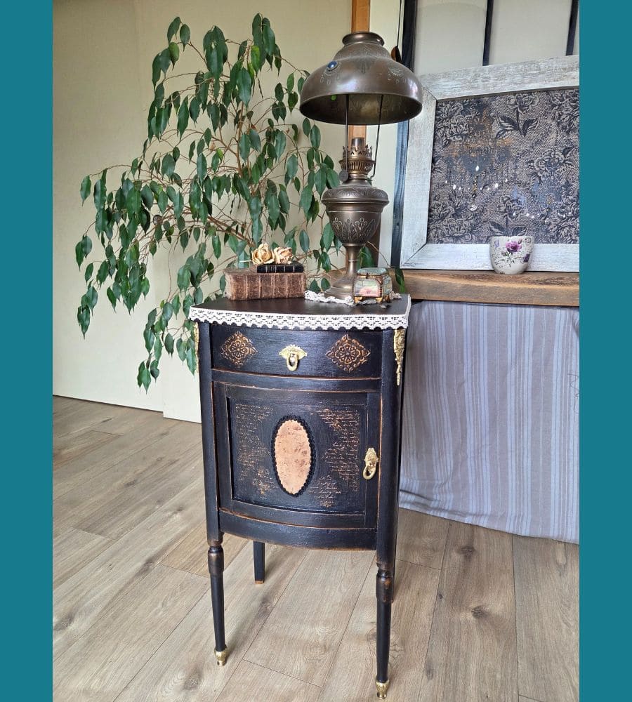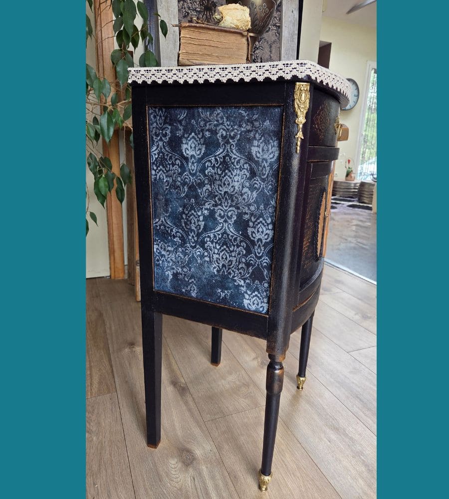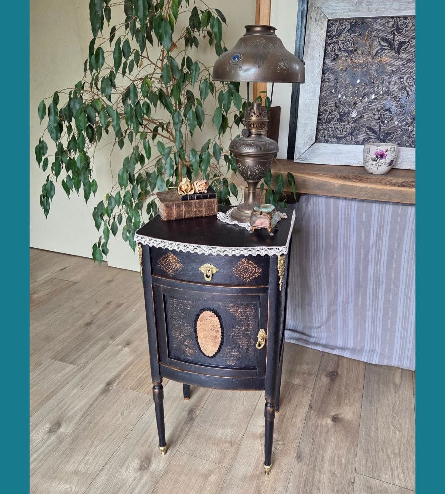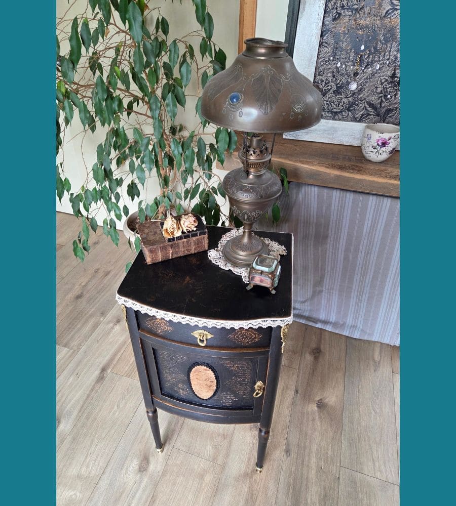 Cette magnifique table de chevet au style baroque, rococo, victorien, pourra également être utilisée comme petit meuble d’entrée ou de salon.